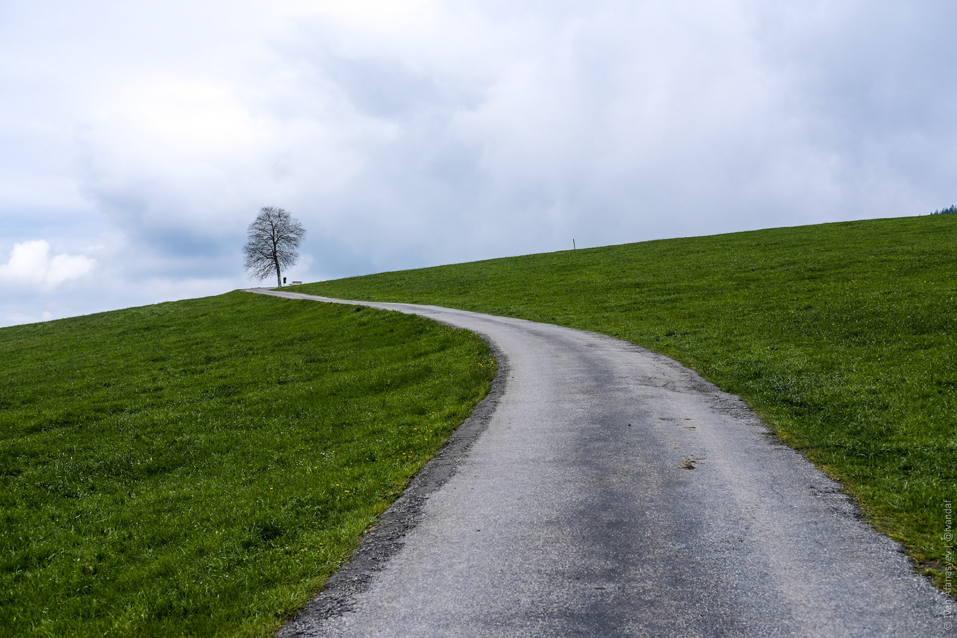 Шли в еловом лесу через облако. Даже здесь виден значок wanderweg.