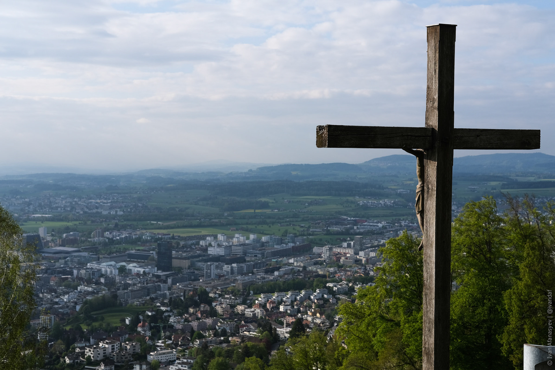 Вид на Цугское озеро с цугской горы оказался одной из самых красивых панорам за всю дорогу.