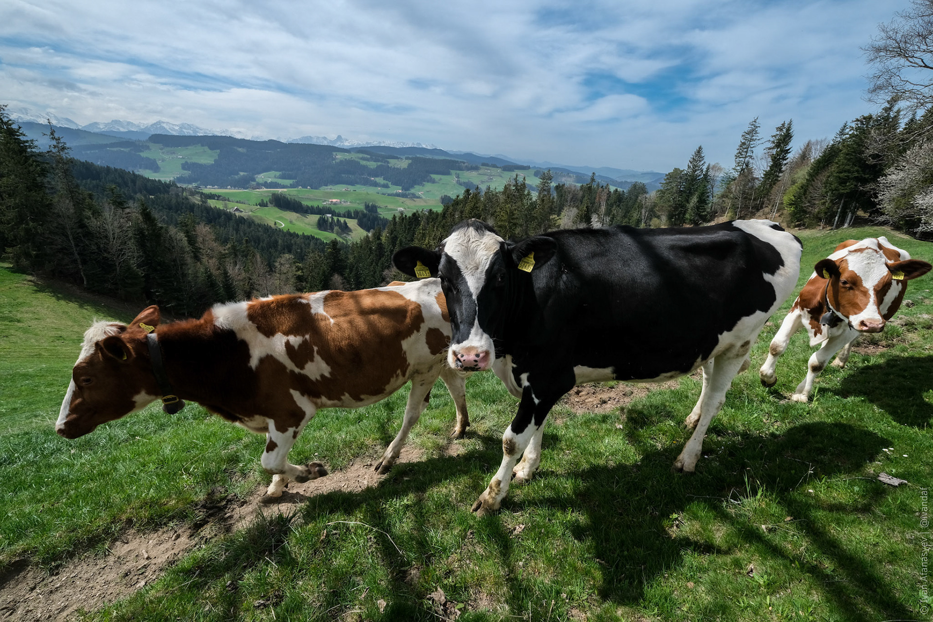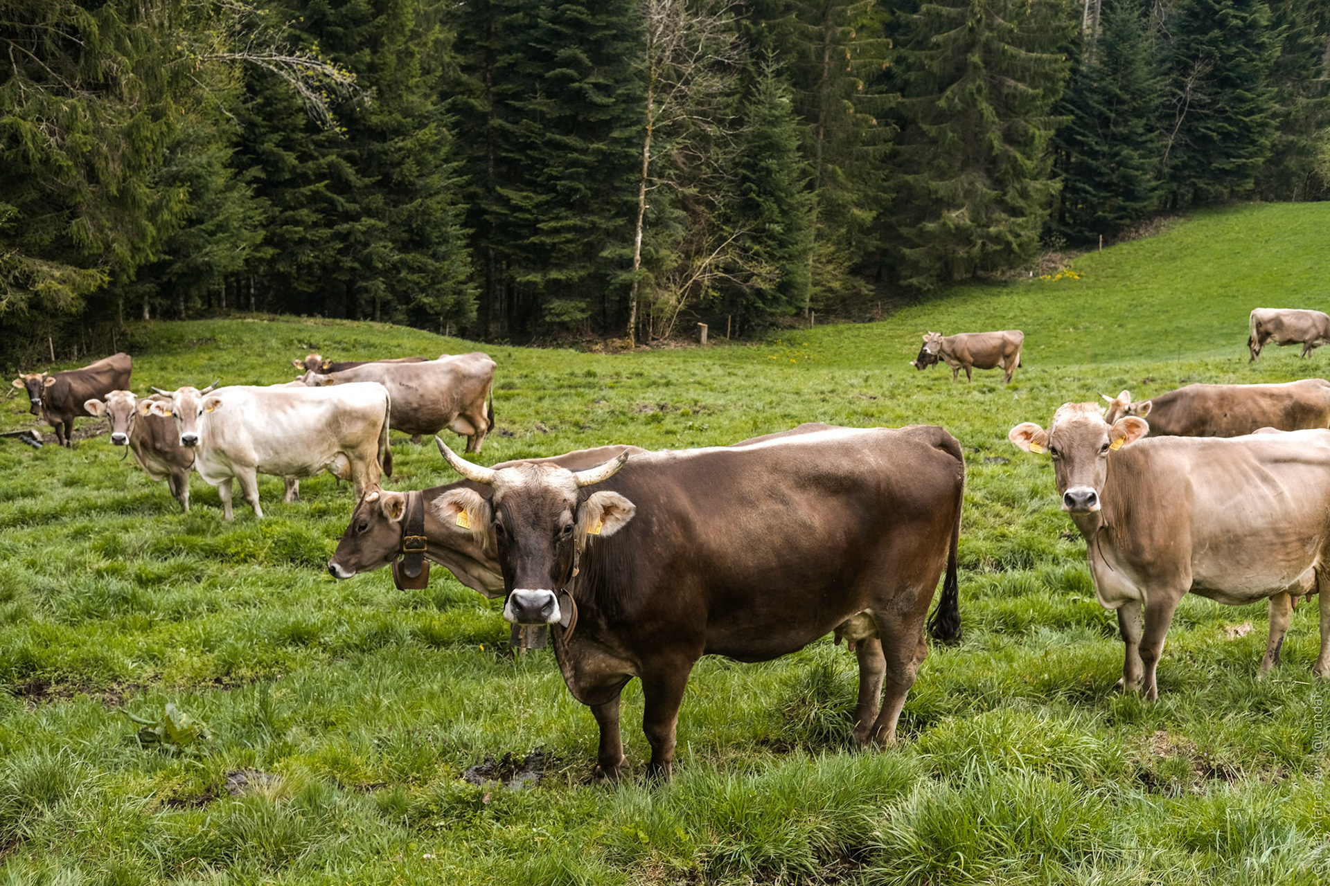 Коров очень много. Кажется, коровы есть у всех, кто живет не в большом городе. Такие относительно большие города в Швейцарии начинаются примерно от 10 тысяч населения.